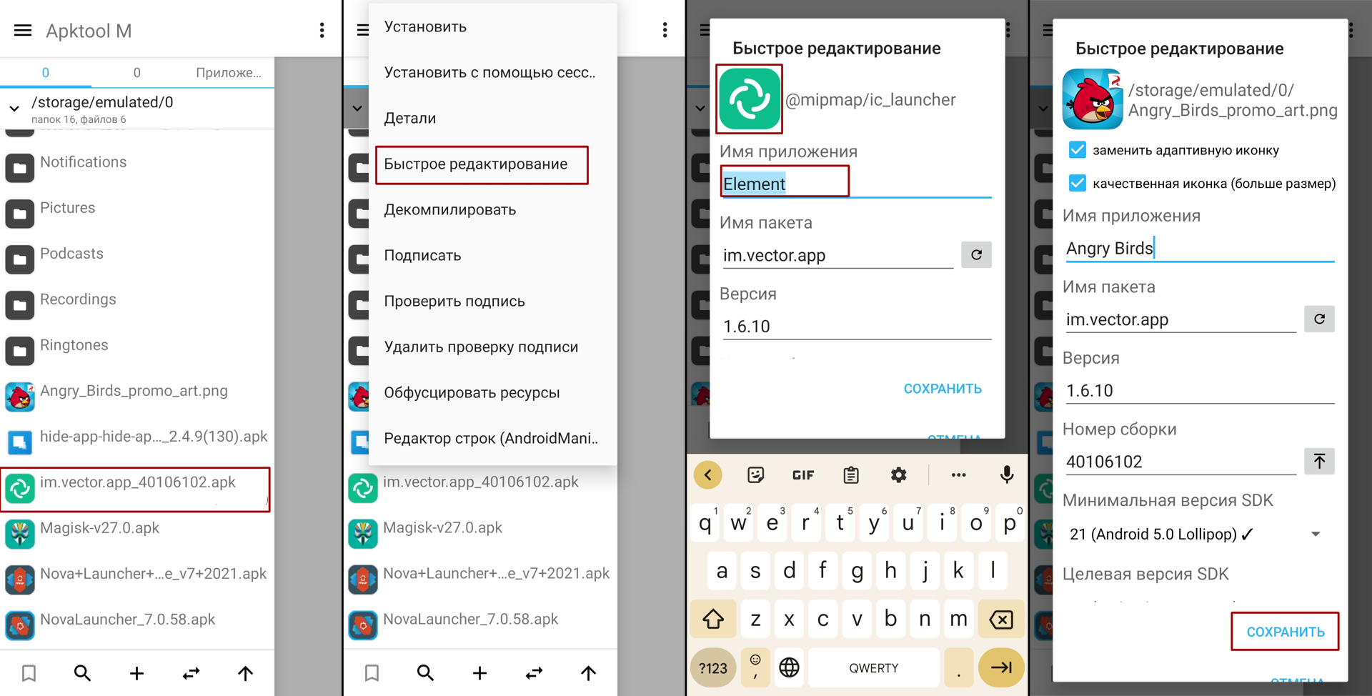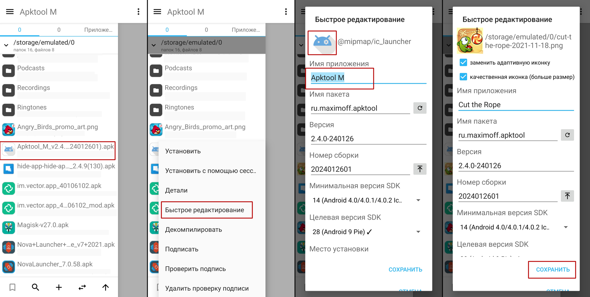 Кстати, те же самые манипуляции можно провести и с самой Apktool M
