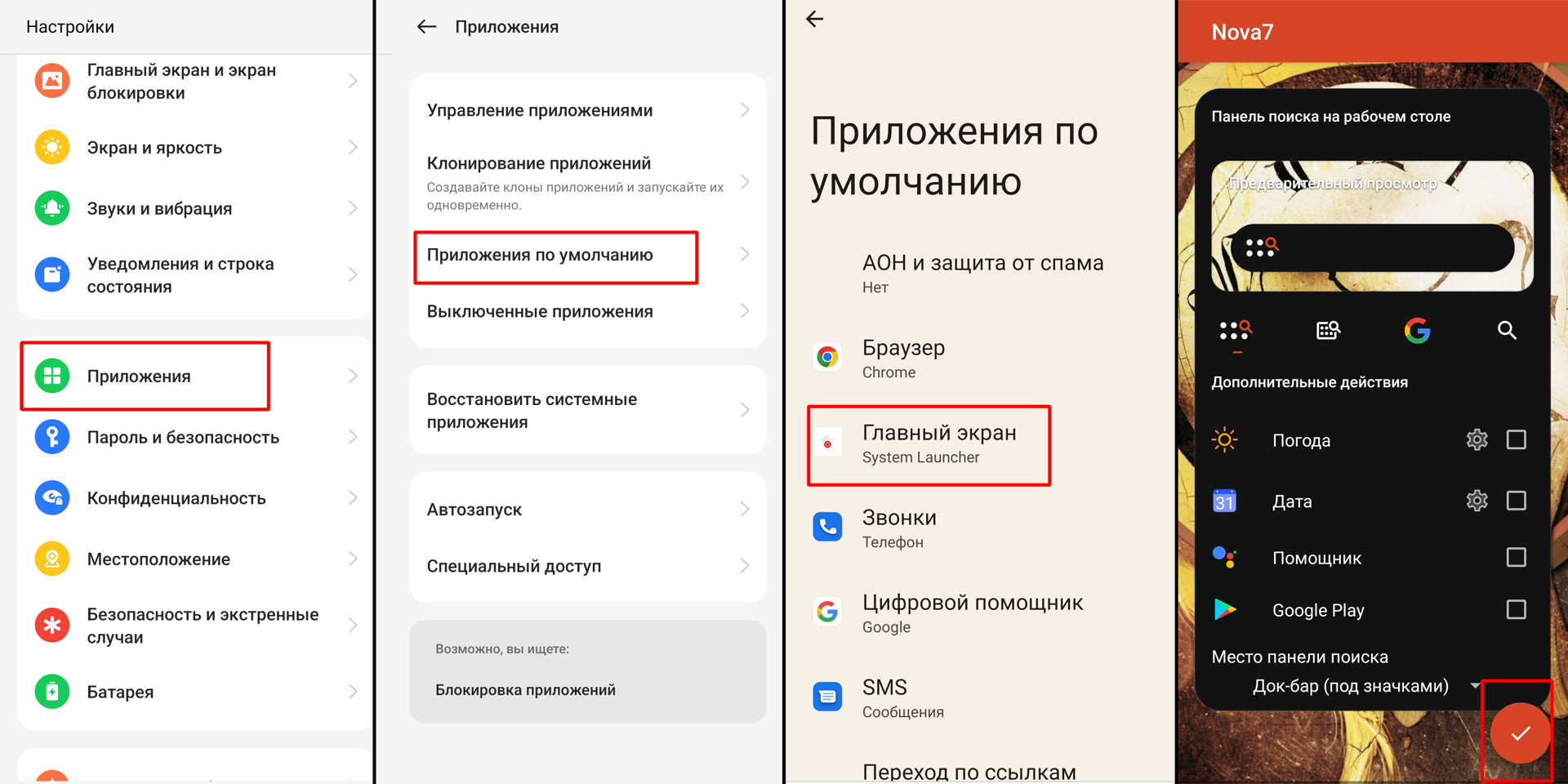4. Выбираем "Главный экран" > Nova Launcher Pro