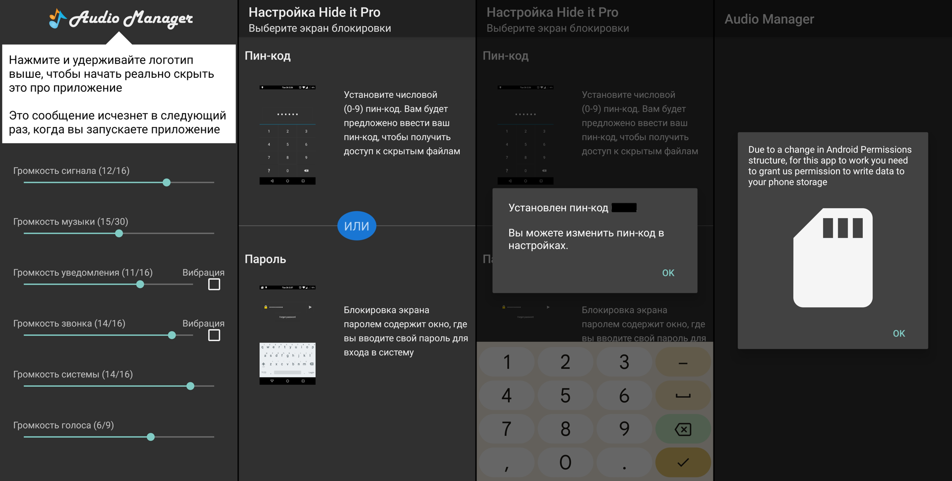 )Интересное приложение, фактически являющееся сейфом для других приложений. Эта апка маскируется под аудио-менеджер, с её помощью можно замаскировать всё палево: мессенджеры, криптокошельки, тор браузер, камеру. Работает она только с рутом, поэтому не подойдет для большей части пользователей. Зато выбранные приложения скрываются даже из настроек. Хочу отметить, что push-уведомления в мессенджерах, которые вы скрываете с её помощью, работать не будут. Но вы и так, по-хорошему, должны их скрыть, чтобы случайно не спалиться перед знакомыми и незнакомыми людьми.