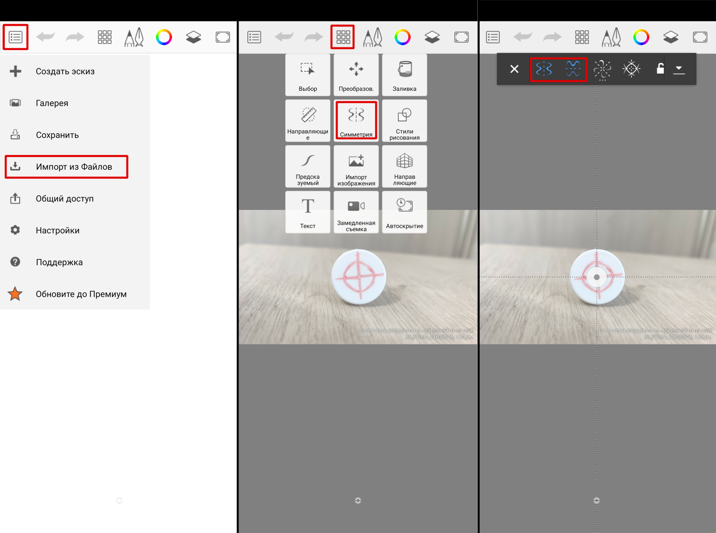 2. Если вам нужно отметить центр фотографии, используйте функцию симметрии