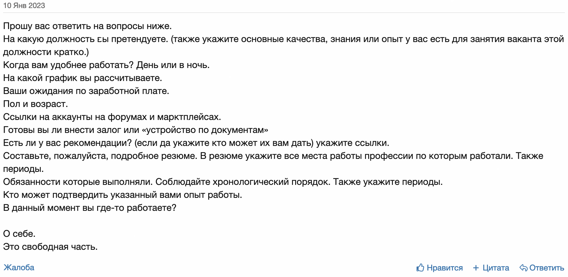 Несколько дней назад произошло интересное событие. Я зашел на форум, начал просматривать темы и в одной из них я увидел, что один из ныне действующих маркетплейсов набирает модераторов для работы. Я в целом человек трудолюбивый и это очень сильно привлекло мое внимание, потому что у меня много свободного времени, я никогда не был модератором и во времена монопольной площадки мне было это очень интересно. Не долго размышляя, я решил попробовать. Изучив условия, я отправил приветственное письмо с заявкой и вышел с форума. Чтож... Если вдруг я подойду, то наверняка узнаю много нового или все слухи о рутине и скучности этой работы подтвердятся. Спустя какое-то время я вновь открыл форум, где увидел несколько сообщений, включая ответ на мою заявку - открываю. Оказалось, что мне ответили очень быстро, но сообщения было два. Первое сообщение от CEO площадки с тремя простыми вопросами, но после него было второе от одного из действующих модераторов, как я понял, уже очень объемное и в стиле типичного HR с просьбой накатать свой темный послужной список, ответить на кучу вопросов, ну вы поняли...))