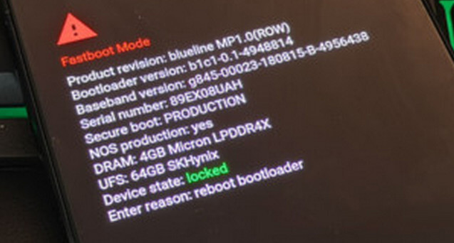 Теперь выключаем устройство и включаем его одновременно зажав кнопку включения и уменьшения громкости, таким образом мы загрузимся в режиме fastboot и увидим надпись о том, что загрузчик заблокирован